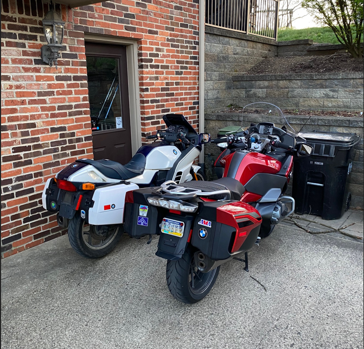 This is a picture of my two current bikes side by side. On the left is my second road bike, a 1989 BMW K100RS (white), and on the right is my third road bike, a 2019 BMW R1250RT (red). My first road bike (sold) was a black 1984 BMW R65, a great starter bike, but not a lot of power for long hauls. I have 100,000 miles give or take across all 3 bikes. I started racing and jumping BMX bikes as a kid and got my first motorized bike experience on a cousin's Honda Trail bike.